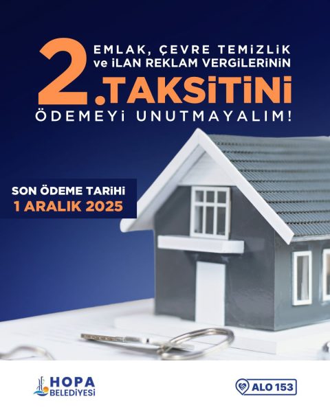 26 Kasım 2025 Duyuru ve İlanlar‚ Manşet yorum yok Emlak, Çevre Temizlik ve İlan Reklam Vergilerinin 2. taksitini ödemeyi unutmayalım!