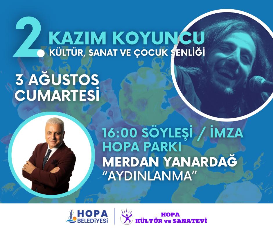 Hopa Kültür ve Sanatevi ile birlikte düzenleyeceğimiz etkinlikte gazeteci ve yazar Merdan Yanardağ, “aydınlanma” konusunda, Doç. Dr. Oğuz Kurdoğlu ve 24. Dönem İstanbul Milletvekili Melda Onur ise yerel yönetimler, hayvan hakları ve ekoloji üzerine söyleşileriyle bizlerle olacak.